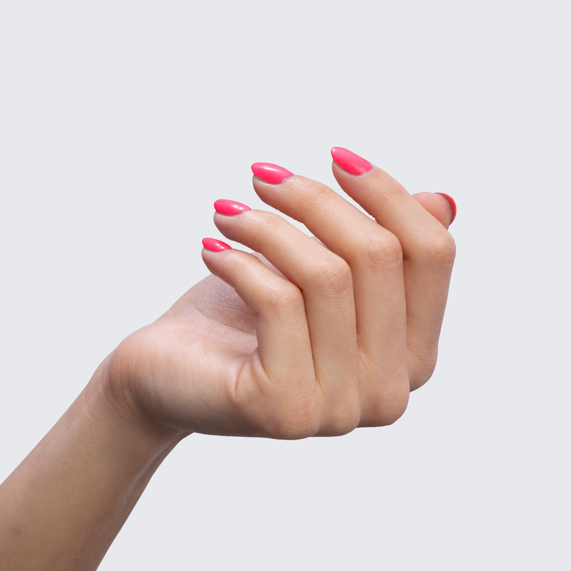 Neon pink. Bright. Cool undertone. Medium opacity.